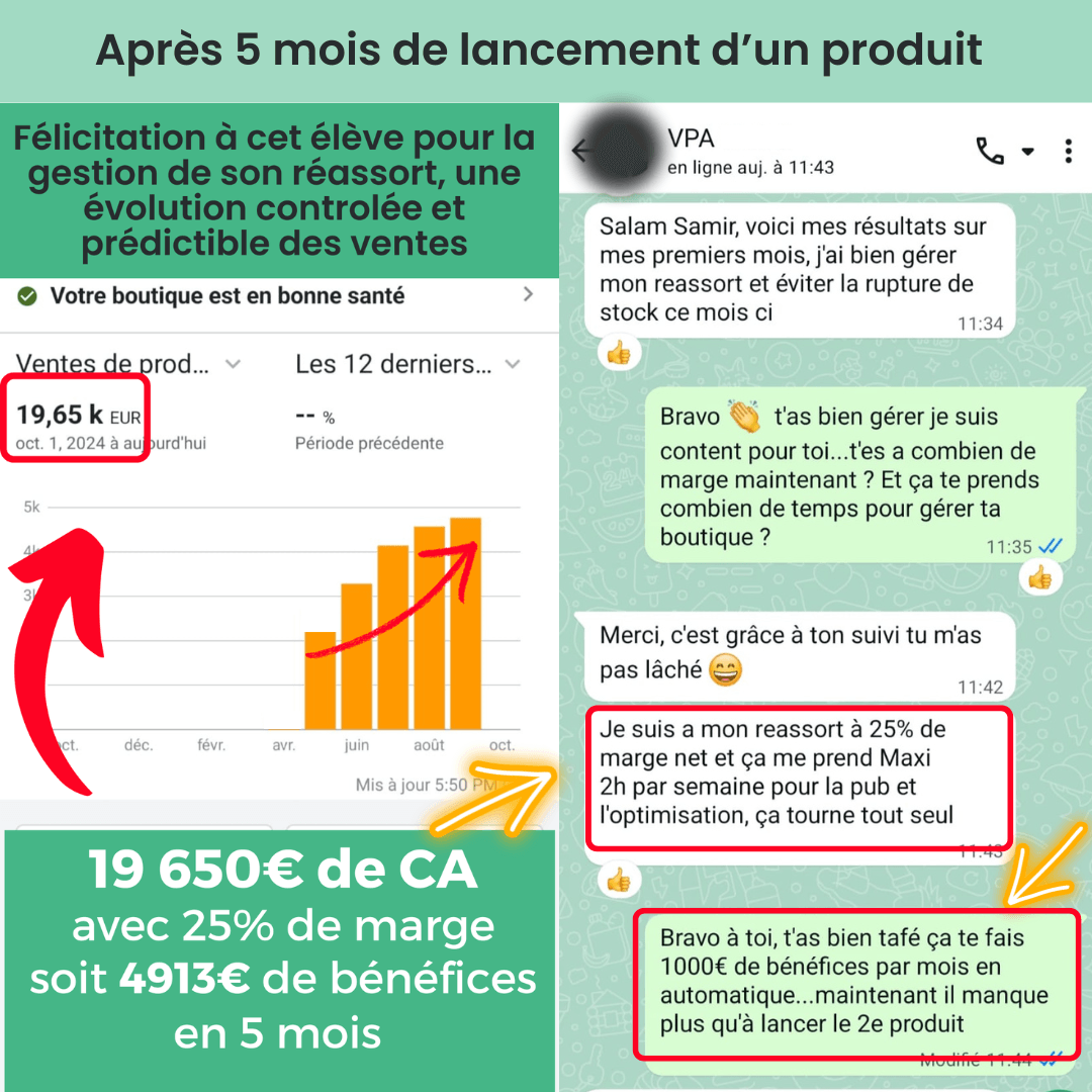 Si tu es déterminé et assidu à la mise en pratique du programme, tu pourras générer tes premières ventes dès le premier mois lorsque ton stock sera disponible dans les entrepôts Amazon.